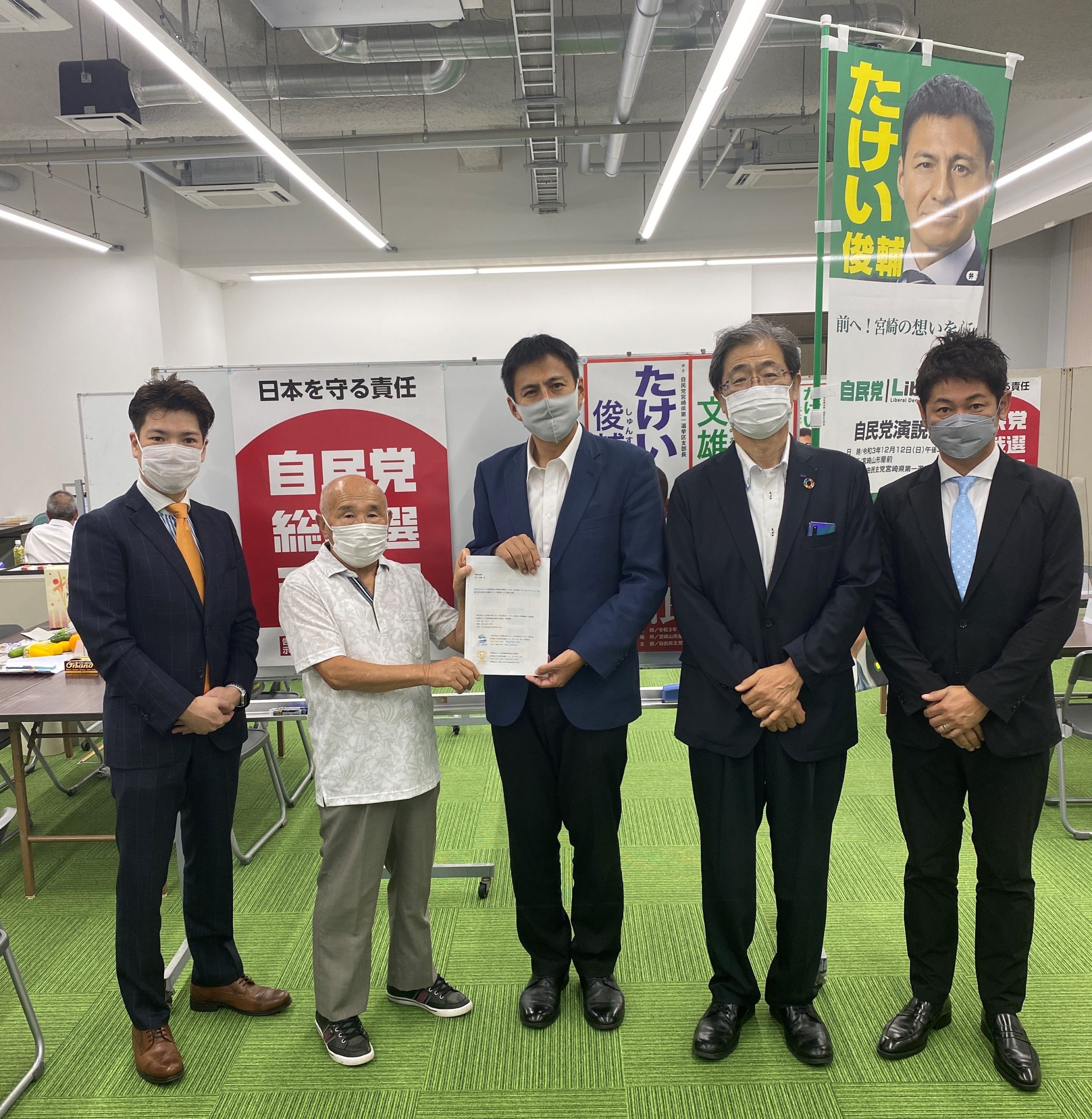 今回のご面会は、地元宮崎の技術スタッフ業界団体である「宮崎県音響照明舞台事業協同組合(MAST)」様との意見交換を目的に、全照協及びスタッフ連合会が調整したもので、全照協寺田航常務理事(スタッフ連合会専務理事)と、九州沖縄地区担当の井上忠理事((株)エスエルアイ)の仲介で、「宮崎県音響照明舞台事業協同組合(MAST)」の中原基隆専務理事((株)AVC放送開発)、木尾明雄事務局長((株)AVC放送開発)のご参加を頂き、コロナ禍での1年半余りの県内業者の苦境、これから先のウィズコロナでの積極的なご協力等、地域に即したご支援について忌憚のない意見交換を行いました。